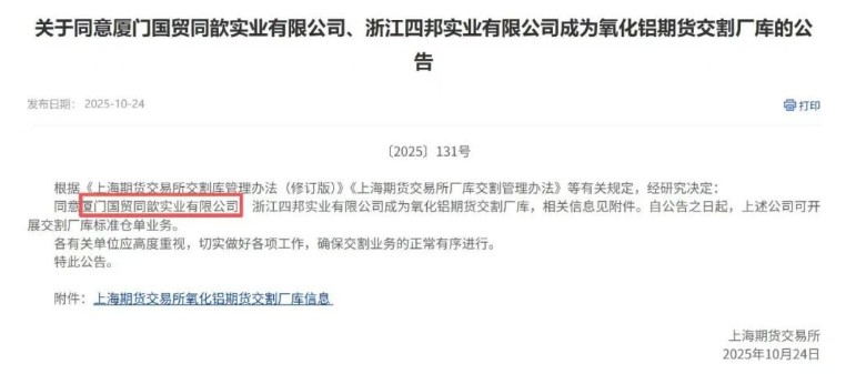國貿(mào)股份獲批上期所氧化鋁交割廠庫資質(zhì)。